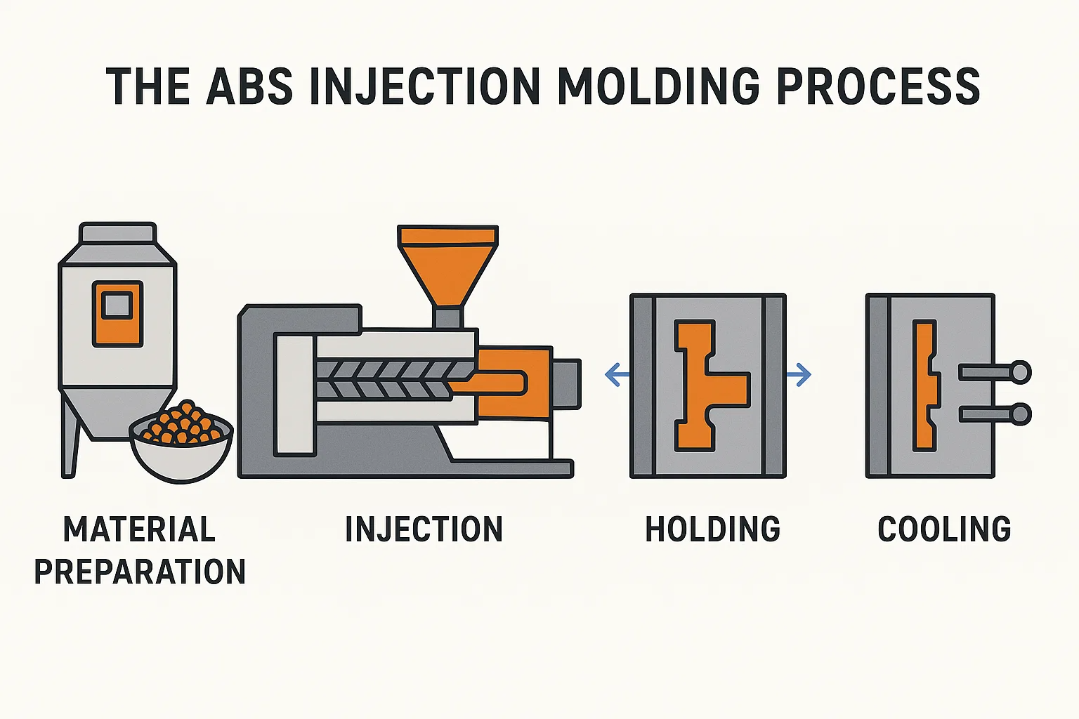 Éilíonn an próiseas múnlaithe insteallta do ABS, go bunúsach cosúil le teirmeaplastics eile a mhúnlú, aird chúramach a thabhairt ar pharaiméadair shonracha chun airíonna uathúla ABS a ghiaráil agus codanna ardchaighdeáin a chinntiú. Tá an próiseas timthriallach, ag táirgeadh páirt nua le gach timthriall iomlán.