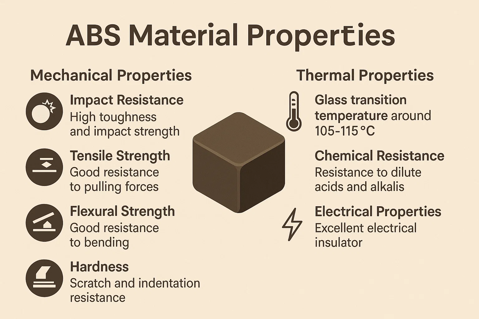 Is mar gheall ar a n -airíonna ábhartha eisceachtúla agus cothroma an glacadh forleathan le ABS i múnlú insteallta. Mar thoradh ar a chumasc uathúil de acrylonitrile, bútaidhé -eireaball, agus styrene tá ábhar ann a thairgeann meascán láidir de neart, aeistéitic, agus inmharthanacht.