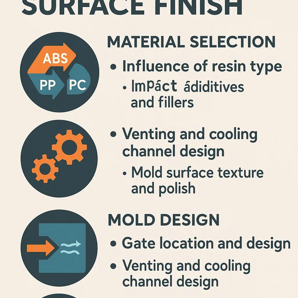 Sonraíonn an treoir chuimsitheach seo conas an Críochnú Dromchla is fearr a bhaint amach i Múnlú Instealladh Plaisteacha trí roghnú ábhar, dearadh múnla agus paraiméadair phróiseála a chothromú. Sainmhíníonn sé príomhmhéadracht cosúil le R a luachanna agus scála bailchríoch SPI, ansin déanann sé iniúchadh ar theicnící cosúil le snasta múnla, téachtadh léasair, agus rialú teochta múnla chun cinn. Ar deireadh, cuireann an t-alt réitigh chórasacha ar fáil do lochtanna coitianta ar nós marcanna doirteal agus línte táthaithe, ag críochnú le breathnú ar threochtaí sa todhchaí lena n-áirítear nana-théacsú agus polaiméirí féin-leighis.