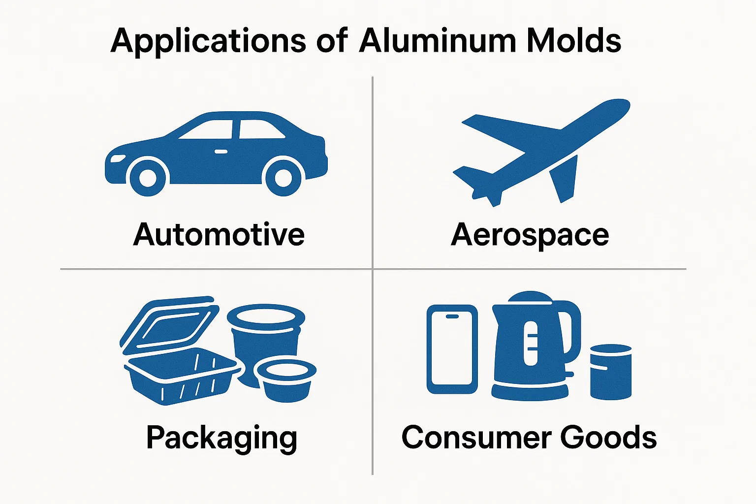 Tá múnlaí alúmanaim tar éis a mbealach a dhéanamh isteach i raon éagsúil tionscal, arna dtiomáint ag an ngá atá le próisis mhonaraithe níos tapúla, níos cost-éifeachtaí, agus inoiriúnaithe. Mar gheall ar a n -airíonna uathúla is fearr iad do chuideachtaí atá ag iarraidh táirgeadh a shruthlíniú agus táirgí nua a thabhairt chun an mhargaidh go tapa.