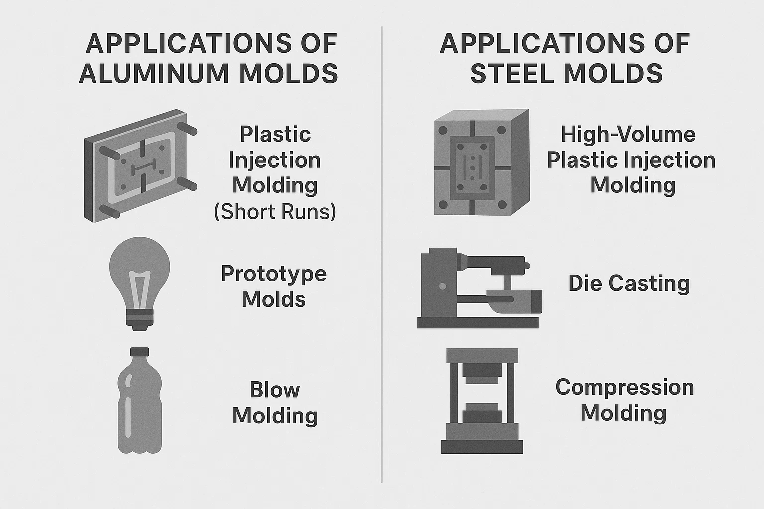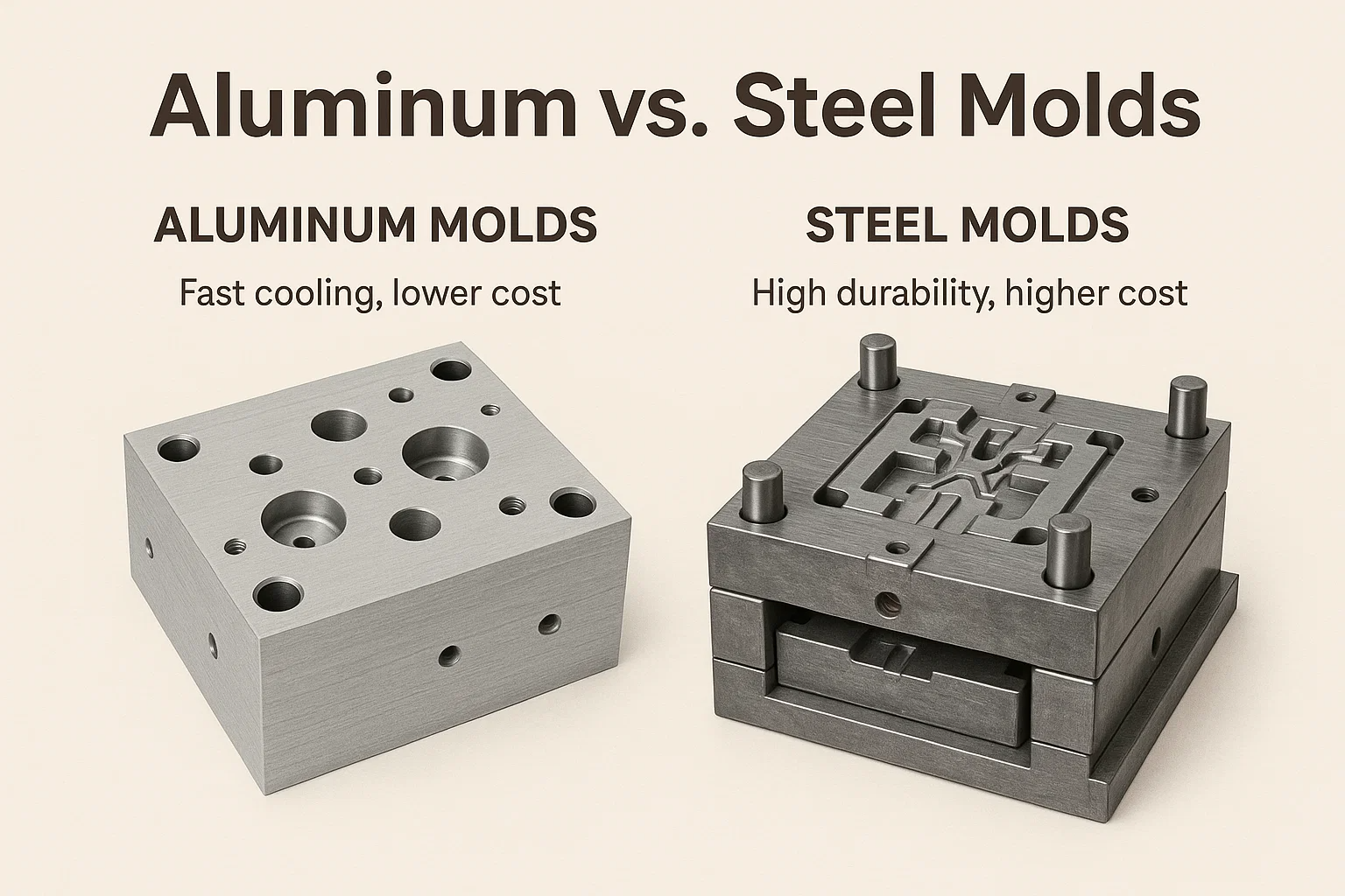 I ndéantúsaíocht, tá an múnla ceart ríthábhachtach chun codanna ardchaighdeáin a chruthú. Bíonn tionchar díreach ag an ábhar a roghnaíonn tú ar an múnla sin ar gach rud ó luas costais agus táirgthe go caighdeán an táirge deiridh. Cé go bhfuil go leor ábhar ar fáil, seasann dhá cheann amach mar an ceann is coitianta agus is solúbtha: alúmanam is cruach .
