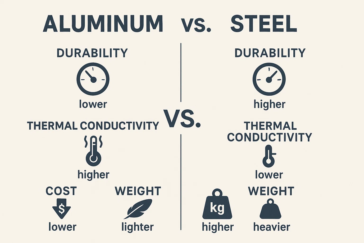 Nuair a roghnaítear idir alúmanam agus cruach, tagann an cinneadh go dtí roinnt difríochtaí criticiúla a mbíonn tionchar acu ar tháirgeadh.