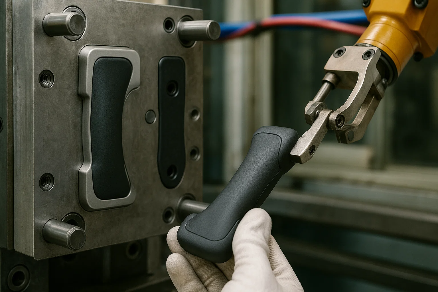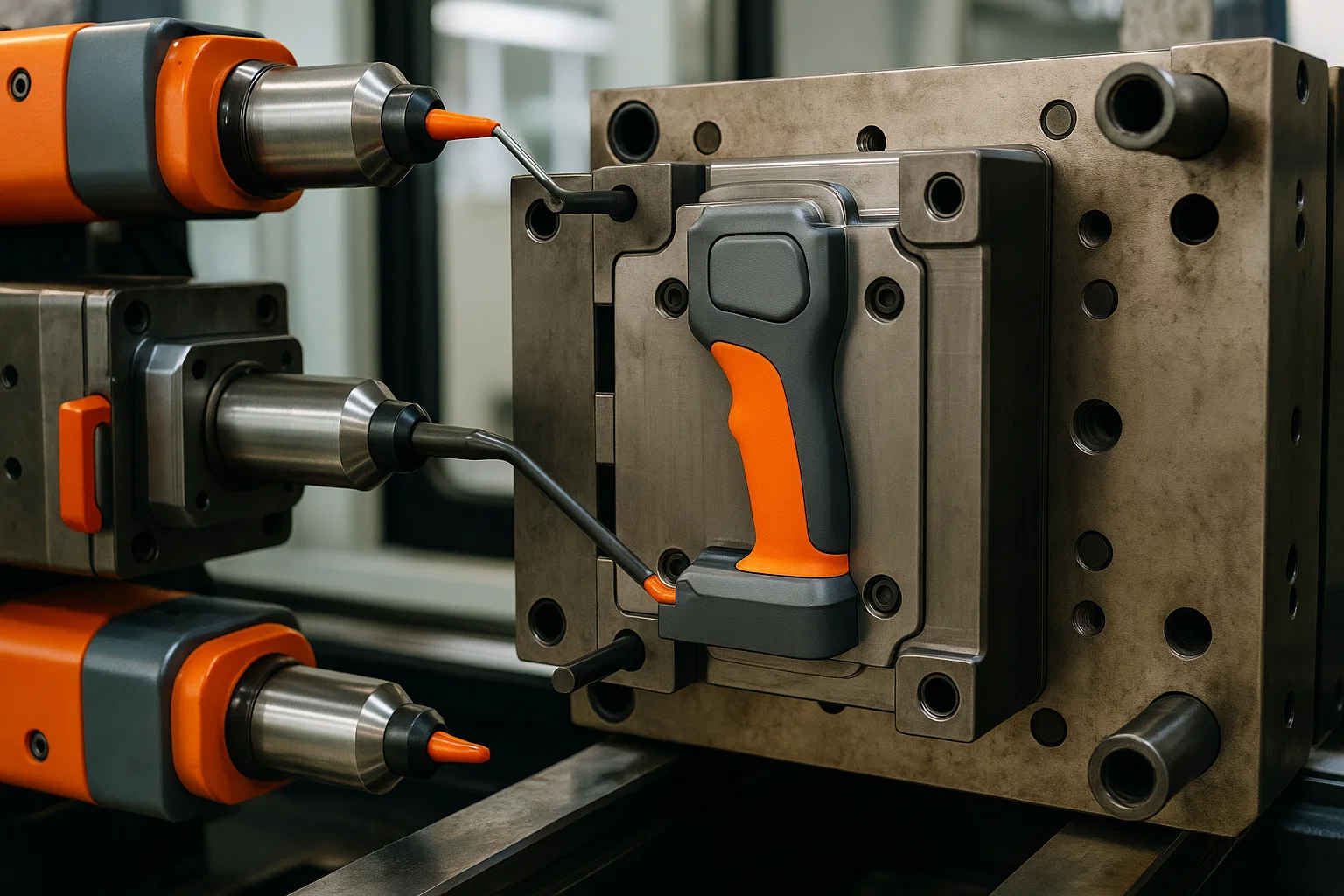 Réiteach: Chuir an monaróir i bhfeidhm overmolding ag baint úsáide as próiseas múnlaithe insteallta dhá lámhaigh. Ar an gcéad dul síos, rinneadh an corp láimhseáil struchtúrach a mhúnlú ó phlaisteach durable, dochta ABS. Rinneadh an "foshraith" dochta seo a rothlú ansin laistigh den mheaisín múnlaithe céanna go dtí an dara cuas. Anseo, instealladh vulcanizate teirmeaplaisteach (TPV) bog, elastomeric thar limistéir shonracha den láimhseáil ABS, ag cruthú greim compordach, neamh-duillín.