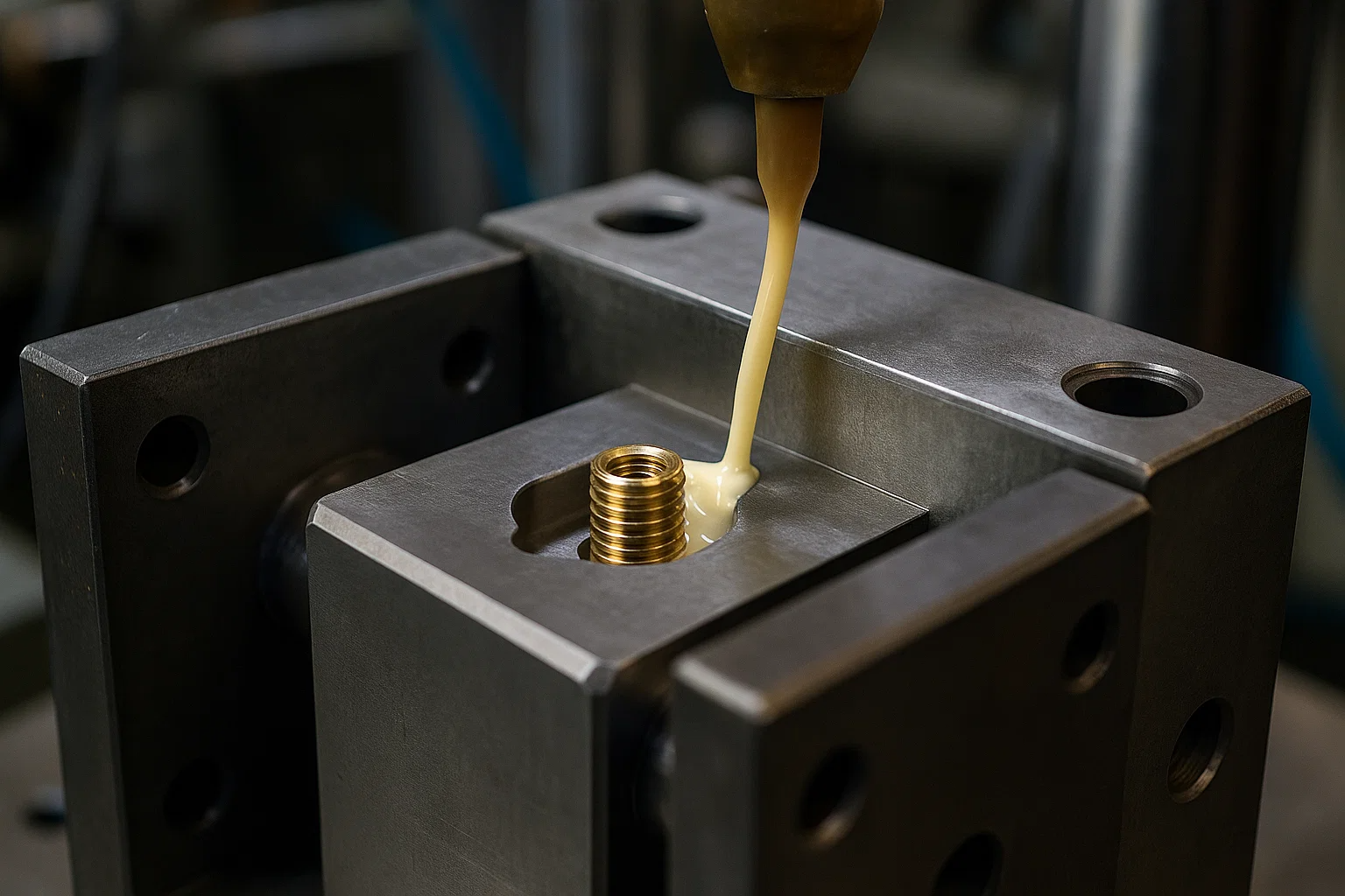Instealladh ábhartha: Déantar plaisteach leáite (teirmeaplaisteach nó teirmeaset) a instealladh faoi bhrú ard isteach sa chuas múnla, ag sileadh timpeall agus ag cuimsiú na n -iatán. Líonann an t -ábhar na folúntais go léir, rud a chruthaíonn banna láidir nó glas meicniúil leis an iontráil.