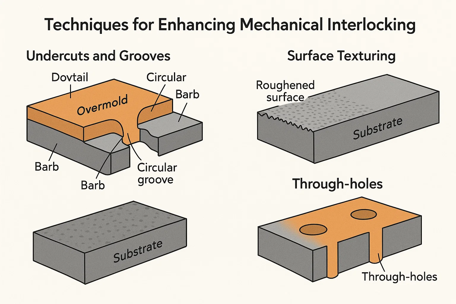 Cé go bhfuil comhoiriúnacht cheimiceach agus próiseáil optamaithe ríthábhachtach, idirnascadh meicniúil Seasann sé mar mhodh láidir agus go minic fíor -riachtanach chun banna láidir, fisiciúil a chinntiú i ró -ró -mhór. Cruthaíonn sé "greim" liteartha idir an dá ábhar, rud a choisceann deighilt fiú nuair a bhíonn greamaitheacht cheimiceach teoranta. Tá sé seo thar a bheith tábhachtach nuair a bhíonn ábhair a bhfuil droch -chleamhnas ceimiceach orthu, mar shampla TPE bog a nascadh le plaisteach fuinnimh dromchla íseal cosúil le polapróipiléin (PP).