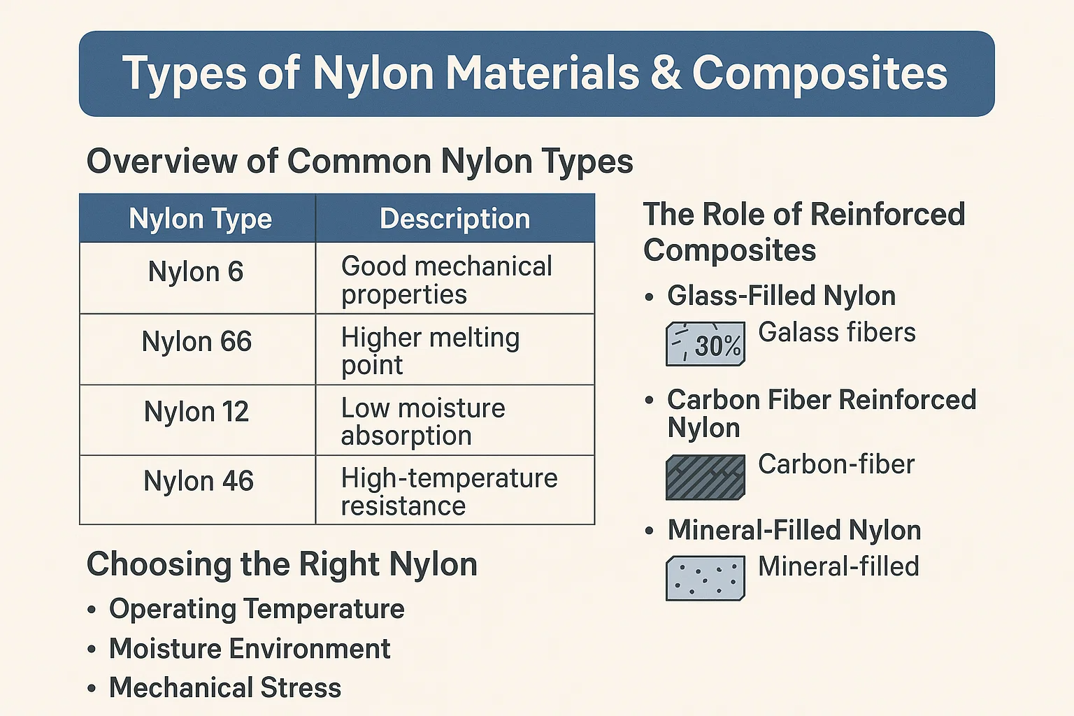 Mar gheall ar chomhcheangal uathúil níolón d'ard-neart, friotaíocht teasa, agus airíonna caitheamh den scoth is rogha tosaíochta é chun miotail a athsholáthar i go leor feidhmchláir éilitheacha ar fud na dtionscal éagsúla.