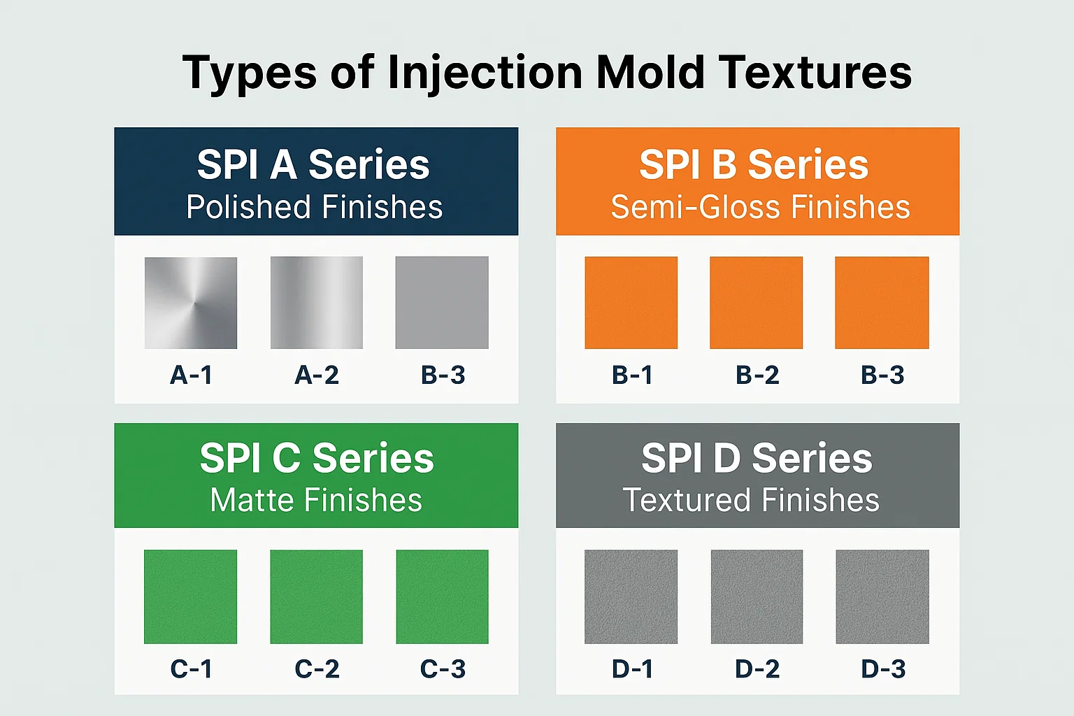 Sraith SPI-A (bailchríocha snasta) Is iad seo na bailchríocha is géire agus is machnamhaí, a baineadh amach tríd an múnla a shnasú le púdar diamaint. Tá siad oiriúnach d'iarratais a bhfuil soiléireacht ard, snasta, nó bailchríoch scátháin ag teastáil uathu.